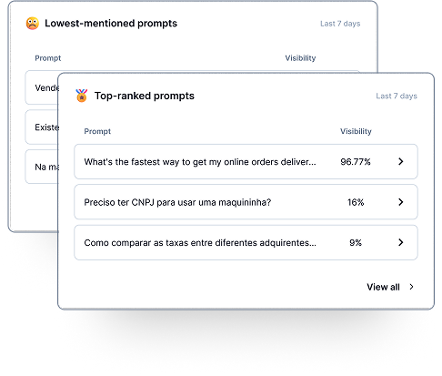 Monitor progress to stay a leader in prompts where your brand already stands out and gain ground in those where you are not yet visible.